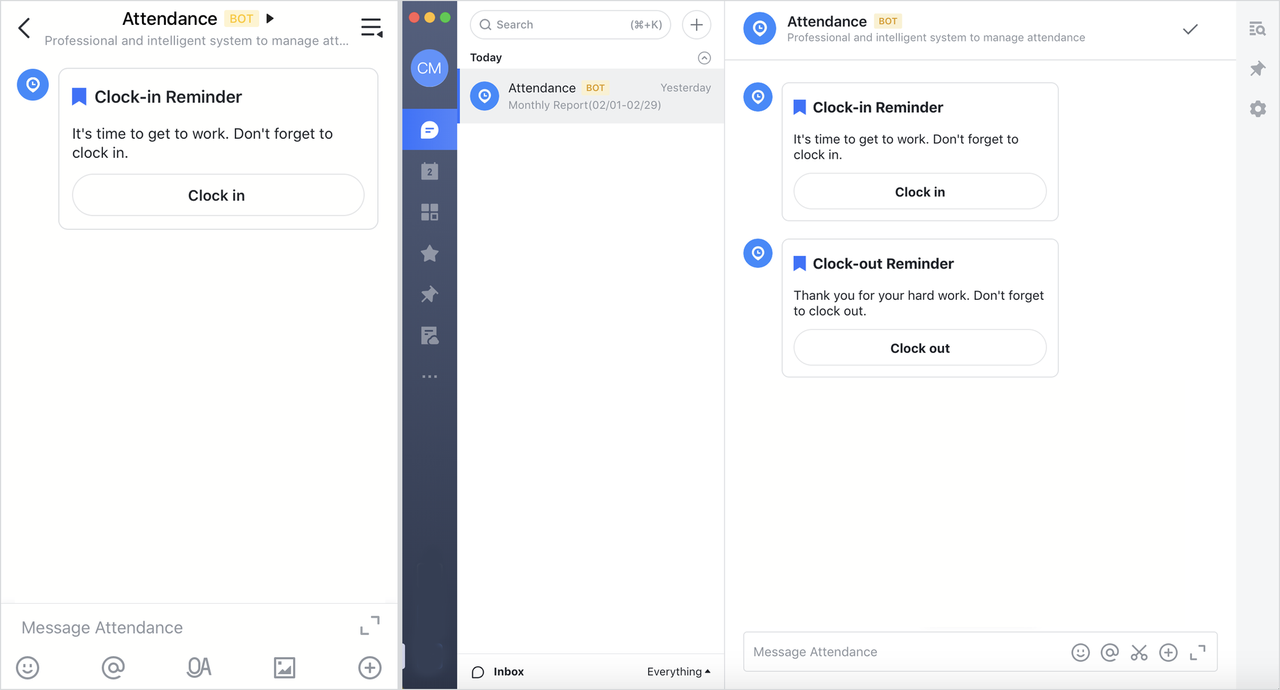 Dùng Lark Attendance để thiết lập hệ thống chấm công tự động bằng Wifi, giúp bộ phận Nhân sự tự động xuất các file báo cáo về thời gian làm việc hàng ngày của nhân viên, đồng thời cho phép chỉ định những nhân sự được miễn chấm công.