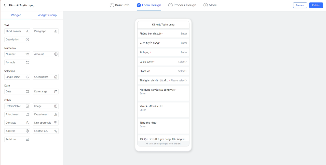 Tạo được các biểu mẫu online theo các tình huống phê duyệt khác nhau
