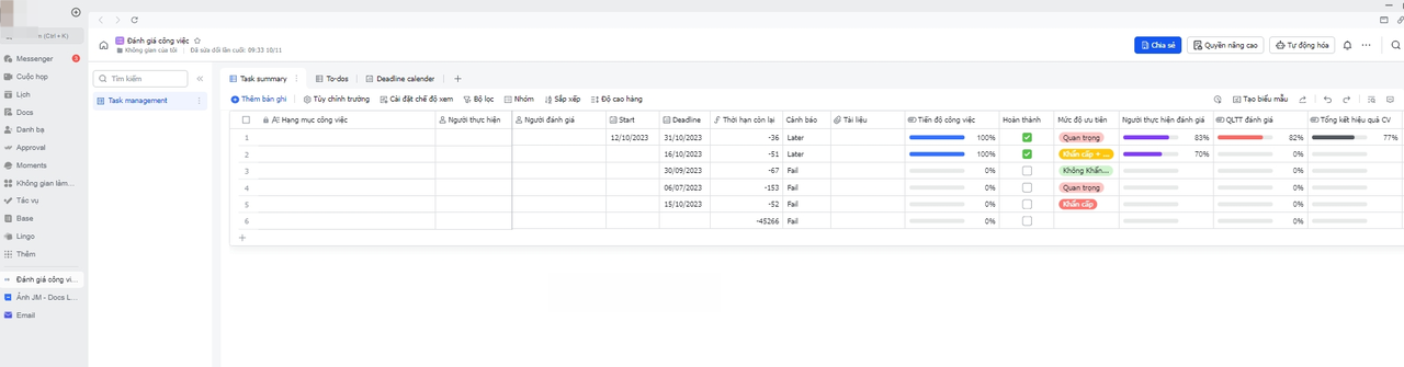 Dùng Lark Base để tạo danh sách nhiệm vụ, đồng thời theo dõi & đánh giá hiệu suất của nhân viên