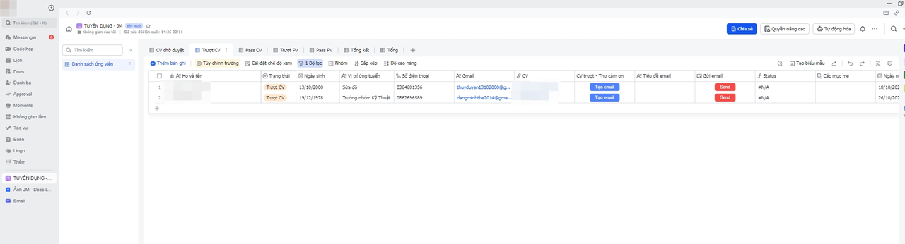 Dùng Lark Base, Lark Mail, Lark Approval, Lark Calendar, Lark AnyCross và DocuMaker để xây dựng quy trình Tuyển dụng tự động hóa toàn diện