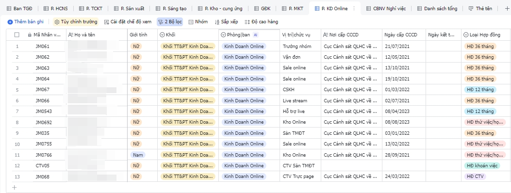 Dùng Lark Base để quản lý thông tin nhân sự. Tạo thông báo tự động về Lark Messenger về thời hạn hợp đồng, sinh nhật nhân viên.
