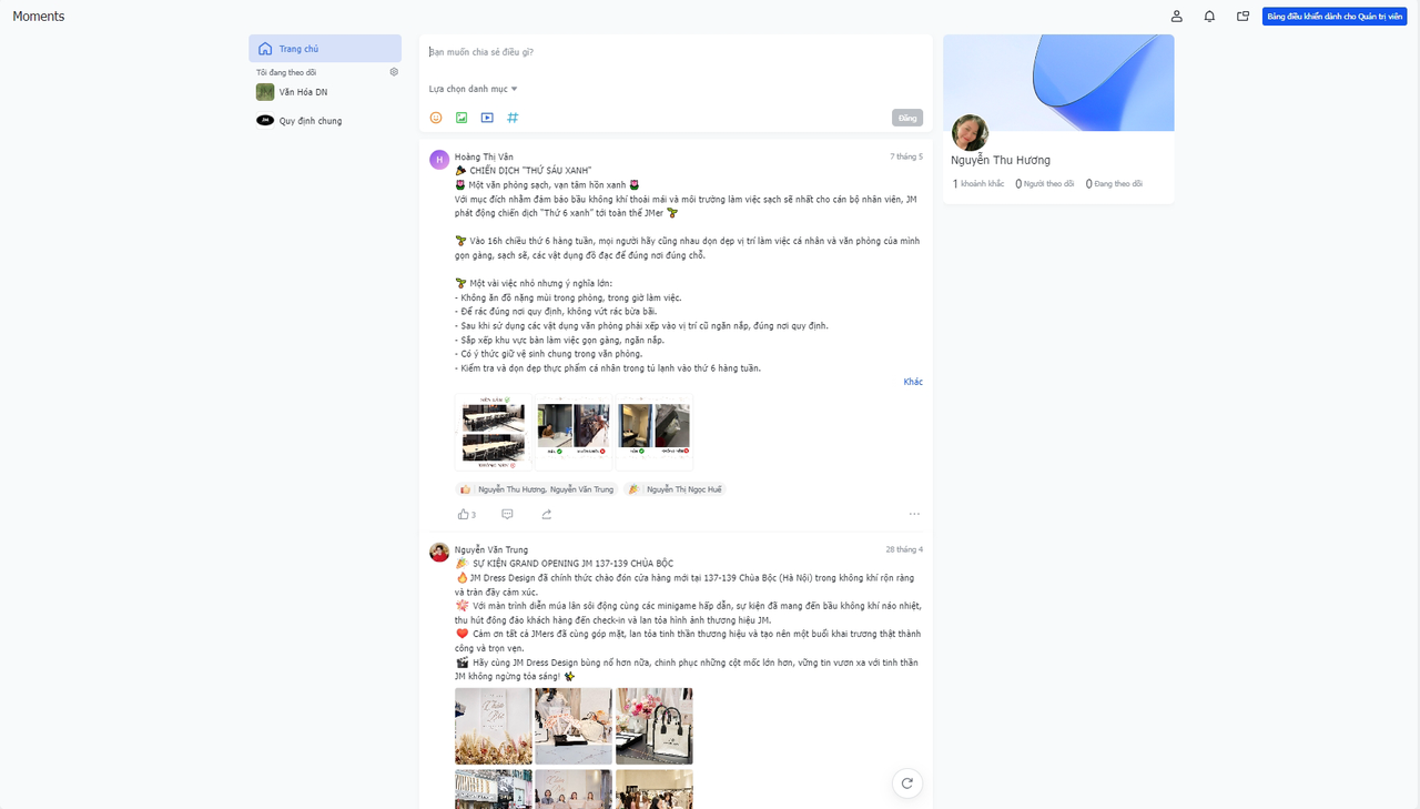 Dùng Lark Moments để chia thành các chủ đề truyền thông phù hợp, khoa học