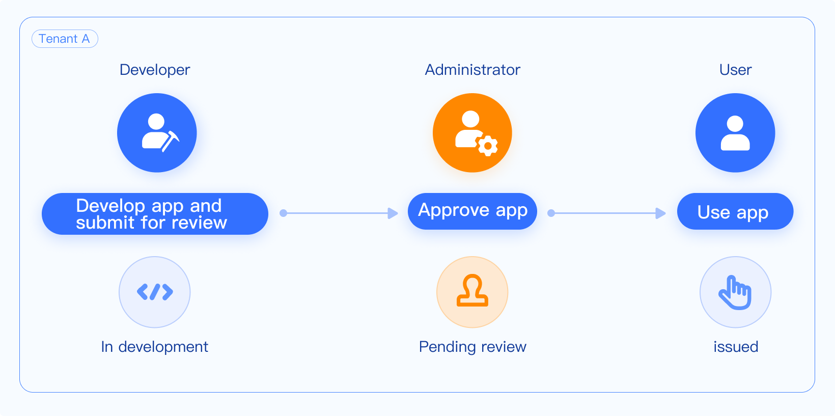 - Ứng dụng trên cửa hàng: Được phát triển bởi nhà cung cấp dịch vụ bên thứ ba, các ứng dụng này được xuất bản trong Lark App Directory và có thể được cài đặt và sử dụng bởi tất cả người mua Lark.
