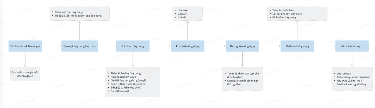Sau khi tham gia Lark Open Platform, các nhà phát triển có thể tạo ứng dụng và xin cấp quyền truy cập vào các tính năng đa dạng của Lark. Quá trình phát triển có thể được tùy chỉnh thông qua các API call (gọi API) hoặc nhúng SDK (bộ công cụ phát triển phần mềm), giúp tích hợp nhiều tính năng mở của Lark. Nhờ đó, các nhà phát triển có thể xây dựng ứng dụng văn phòng cá nhân hóa theo nhu cầu thực tế, từ đó tạo ra phương thức làm việc hiệu quả.