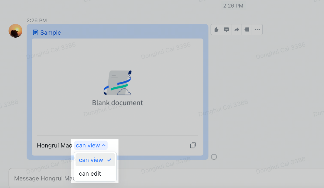 Trong Lark, bạn có thể chia sẻ tệp tin trong nhóm chat để cấp quyền truy cập trực tiếp cho người nhận hoặc thành viên nhóm trong chat.