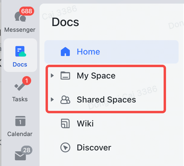 Sự khác biệt lớn nhất giữa hai ứng dụng này là không có thư mục Được chia sẻ với tôi trong Lark.