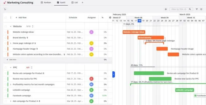 Gantt Chart là một công cụ trực quan, giúp tối ưu hóa quá trình lập kế hoạch, theo dõi tiến độ và phân công công việc trong quản lý dự án. Trên Lark, nền tảng đã cung cấp sẵn nhiều template Gantt Chart trực quan và dễ tùy chỉnh. Nhờ vậy, doanh nghiệp có thể nhanh chóng áp dụng, tiết kiệm thời gian thiết lập và tập trung tối đa vào triển khai dự án.