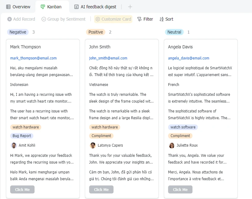 Tính năng này đặc biệt hữu ích đối với các doanh nghiệp đa quốc gia, giúp họ nhanh chóng nắm bắt phản hồi từ khách hàng ở nhiều khu vực khác nhau và tránh bỏ sót những insight quan trọng, đảm bảo mọi ý kiến của khách hàng đều được ghi nhận và xử lý.